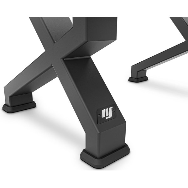 Stojak oferuje również wyjątkową stabilność i wytrzymałość. Wykonany z grubej blachy o grubości 4 mm, gwarantuje solidność konstrukcji i bezpieczeństwo użytkowania. Konstrukcja wspierająca w kształcie litery "X" oraz estetyczne łączenia nóg, wykonane z ozdobnie wyciętej blachy, nie tylko dodają stylu, ale przede wszystkim zapewniają pełną stabilność podczas użytkowania. Dzięki temu, użytkownicy mogą być pewni, że sprzęt pozostanie na swoim miejscu nawet przy intensywnym użytkowaniu.
