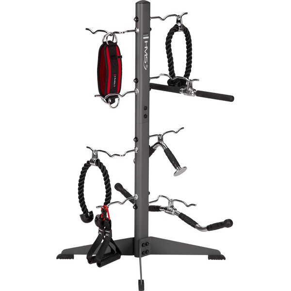 Stojak na akcesoria STR33 HMS to doskonały wybór dla każdego, kto ceni sobie porządek i wygodę w swojej przestrzeni treningowej. Jego solidna konstrukcja, łatwość montażu i przechowywania oraz możliwość zawieszenia różnych akcesoriów sprawiają, że jest to niezastąpiony sprzęt dla wszystkich, którzy chcą mieć swoje akcesoria fitness zawsze pod ręką.