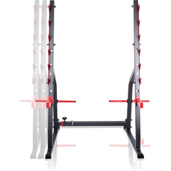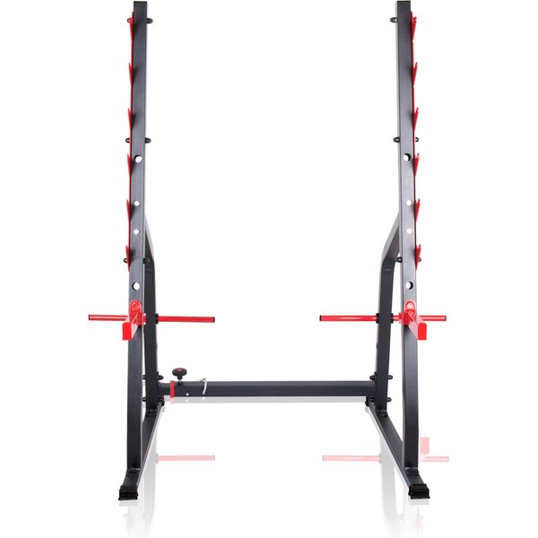 Jest to stojak o wyjątkowej wytrzymałości i funkcjonalności, który zapewnia pełne bezpieczeństwo podczas treningu. Najważniejszą cechą tego produktu jest regulowana wysokość uchwytów. Stojak posiada aż trzy różne poziomy regulacji rozstawu, co pozwala na idealne dopasowanie do długości sztangi. Dzięki temu każdy użytkownik będzie mógł trenować w optymalnej pozycji.