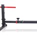Pręty na obciążenia są zakończone gumowymi nakładkami, które amortyzują wstrząsy i chronią sprzęt. Konstrukcja stojaka jest bardzo solidna i wytrzymała. Zbudowana jest z mocnego profilu o wymiarach 50x50x2 mm, co zapewnia stabilność i bezpieczeństwo podczas treningu. Stojak posiada również gumowe stopki, dzięki czemu można go postawić na każdym rodzaju podłoża, bez obawy o zarysowanie podłogi.