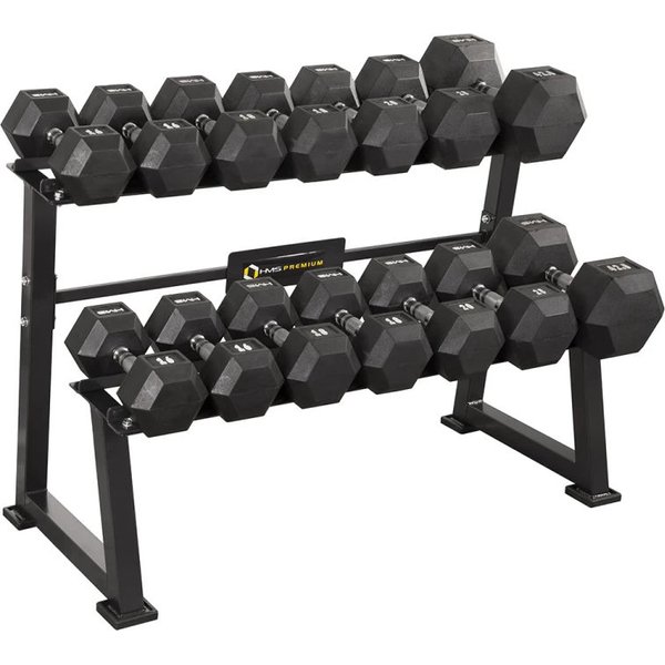 Stojak na hantle marki HMS to doskonałe rozwiązanie dla osób ceniących porządek i bezpieczeństwo podczas treningu. Jego solidna, stalowa konstrukcja zapewnia stabilność i wytrzymałość, co jest kluczowe przy przechowywaniu ciężkiego sprzętu. Dwupoziomowe półki z prętami zabezpieczającymi umożliwiają łatwe i intuicyjne odkładanie hantli, co zwiększa komfort użytkowania. Dzięki kompaktowym wymiarom stojak idealnie sprawdzi się zarówno w profesjonalnej siłowni, jak i w domowej przestrzeni treningowej. Maksymalna waga obciążenia wynosząca 500 kg pozwala na przechowywanie dużej ilości sprzętu, co czyni ten stojak nieocenionym wsparciem w organizacji przestrzeni do ćwiczeń.