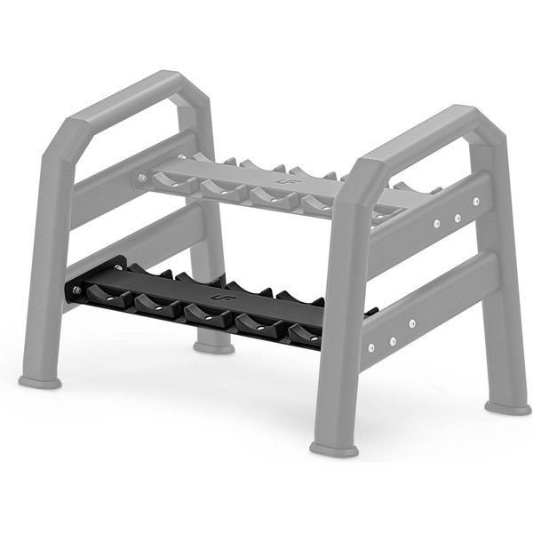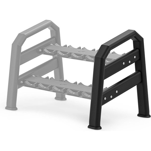 Każda półka wyposażona jest w pięć podkładek na hantle, umożliwiając przechowywanie ciężarów o różnej wielkości. Minimalna długość części chwytnej wynosi 12 cm, a maksymalna średnica hantli to 21 cm, co sprawia, że stojak jest kompatybilny z szerokim zakresem sprzętu. Estetyczny design stojaka, łączący nowoczesny wygląd z funkcjonalnością, sprawia, że doskonale komponuje się z każdym wnętrzem siłowni.