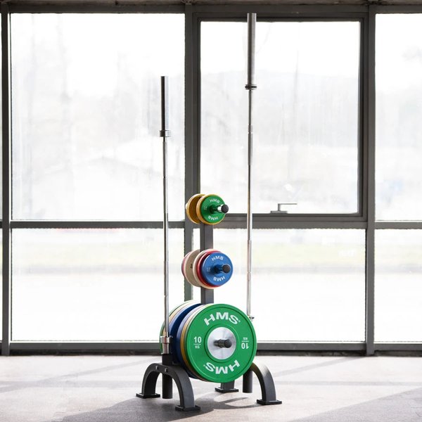 Stojak na obciążenia i gryfy olimpijskie HMS to nowoczesne rozwiązanie dla osób ceniących sobie porządek i organizację w przestrzeni treningowej.