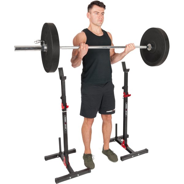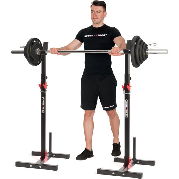 Stojaki z asekuracją i miejscem na obciążenie MH S202 marki Marbo Sport świetnie sprawdzą się jako solidne narzędzie w zróżnicowanym treningu wielu partii mięśniowych.
