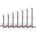 Wyposażone w 7-stopniową regulację wysokości opierającą się na pokrętle dociskowym i stalowej przetyczce blokującej, zapewnia to gwarantowaną stabilność całej konstrukcji. Gumowe nakładki na widełki stojaków odpowiadają za tłumienie hałasu i amortyzację uderzenia gryfu, natomiast stopki z tworzywa sztucznego nie rysują podłogi.