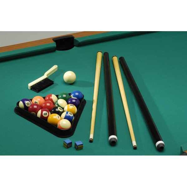 • zestaw zawiera: zestaw bil: średnica 48 mm, kije drewniane: 122 cm, trójkąt, 2 kredy, szczotka do sukna