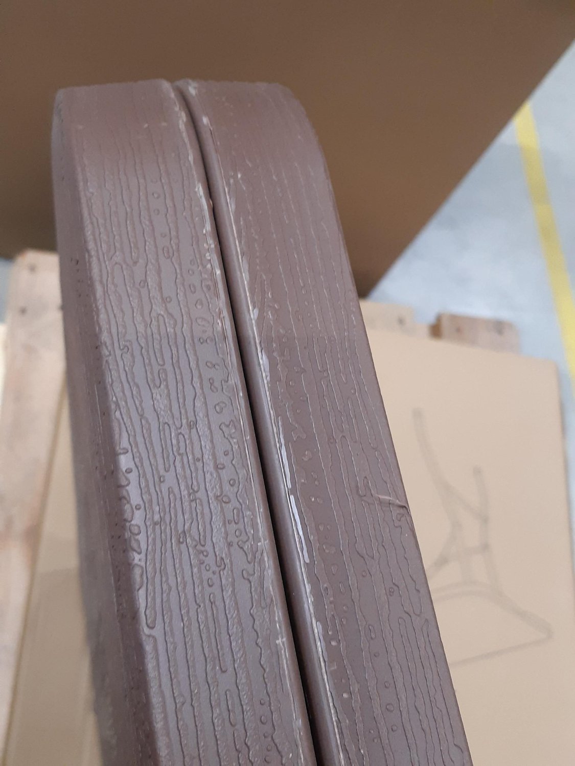 Blat wykonany z polietylenu wysokiej gęstości (HDPE) w brązowym wykończeniu doskonale imituje strukturę i kolor drewna, jednocześnie zapewniając wyjątkową odporność na działanie czynników zewnętrznych. Dzięki temu produkt nie tylko estetycznie się prezentuje, ale również sprawdza się w intensywnym użytkowaniu – zarówno na zewnątrz, jak i wewnątrz pomieszczeń.