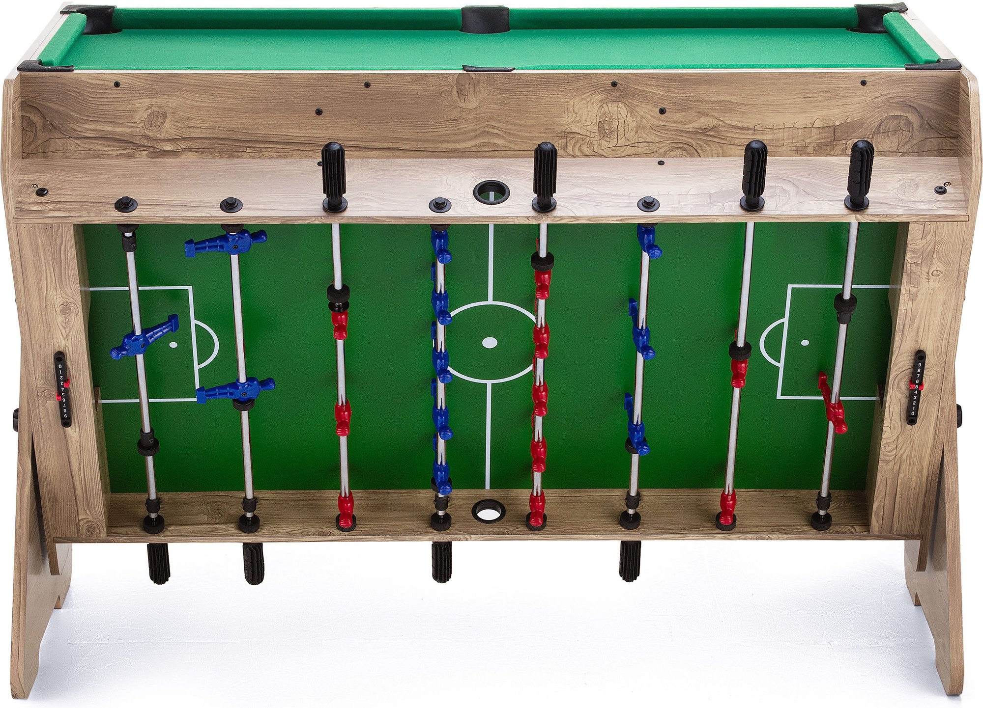 System Switch Play to obrotowy mechanizm umożliwiający błyskawiczną zmianę trybu gry bez potrzeby demontażu lub czasochłonnych przygotowań. Dzięki niemu możesz przełączać się między bilardem, cymbergajem a piłkarzykami w kilka sekund, co pozwala w pełni skupić się na rozrywce i rywalizacji.