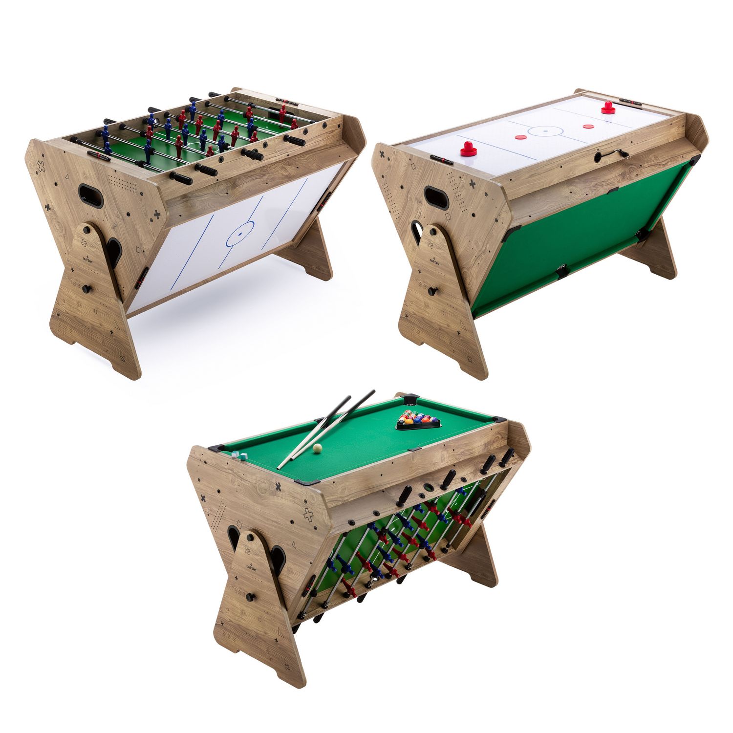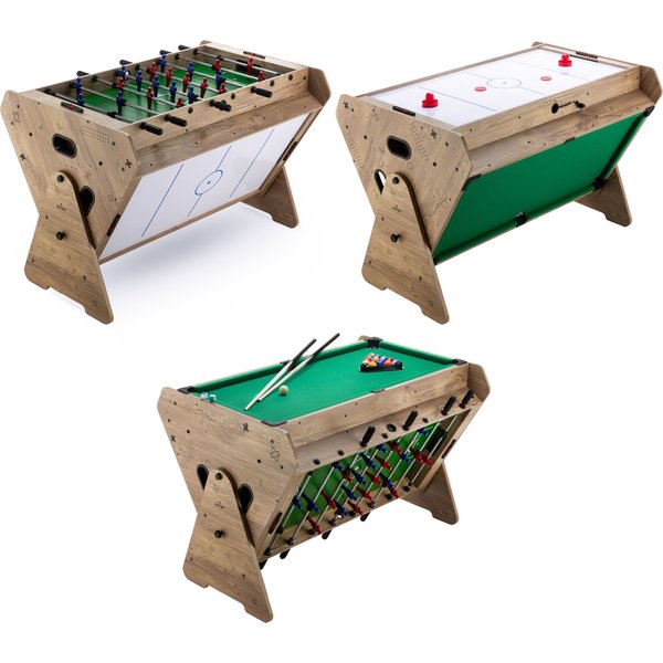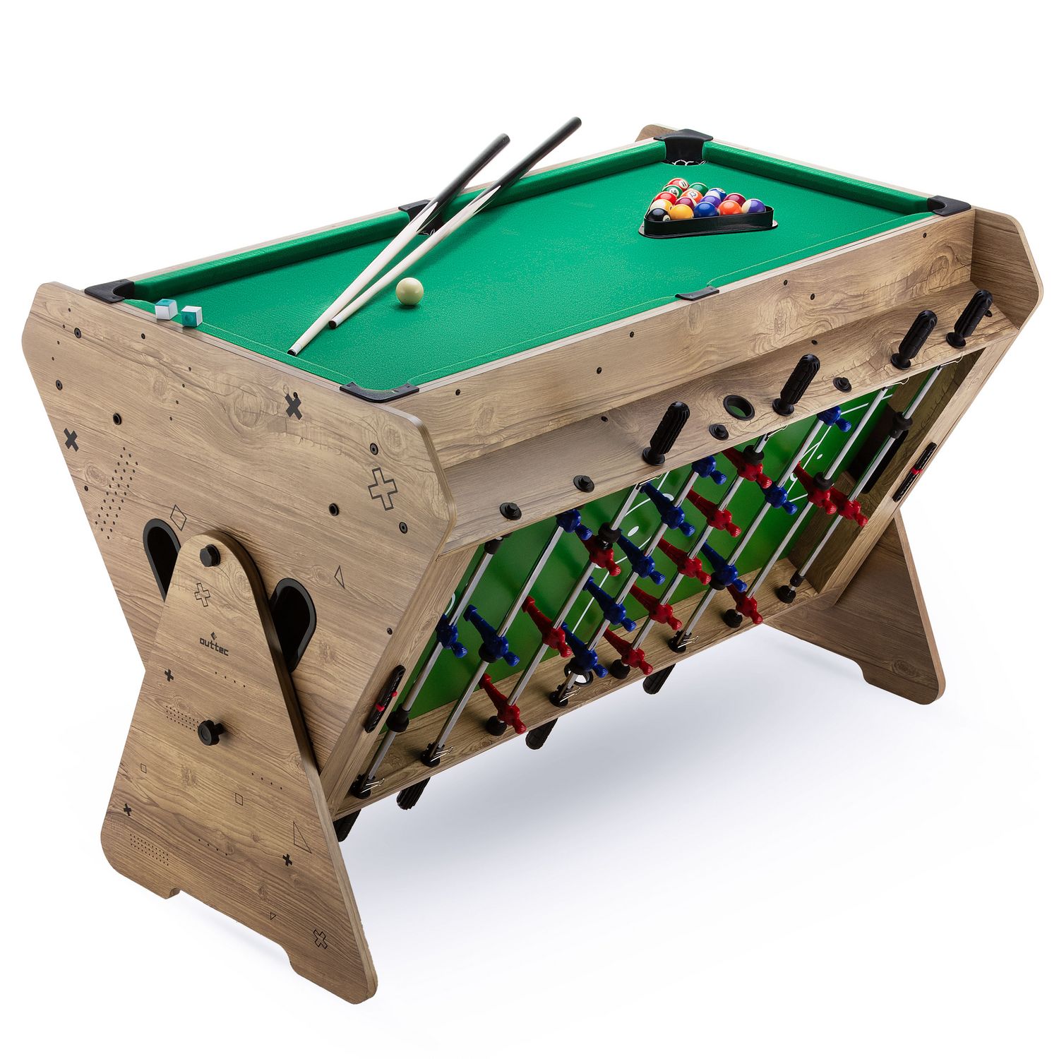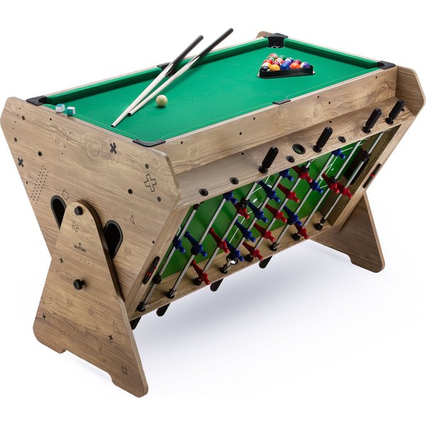 - Zabawa bez przerwy z systemem Switch Play: Obrotowy mechanizm umożliwia szybką zmianę trybu gry – od bilarda, przez cymbergaj, aż po piłkarzyki – w zaledwie kilka sekund.