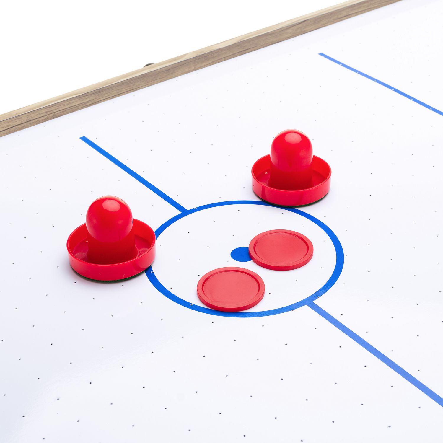 - Kompletny zestaw akcesoriów: W komplecie znajdują się wszystkie niezbędne akcesoria: bile, kije, piłeczki, krążki, uchwyty, figurki, rączki i liczniki – gotowe do gry od razu po rozpakowaniu.
