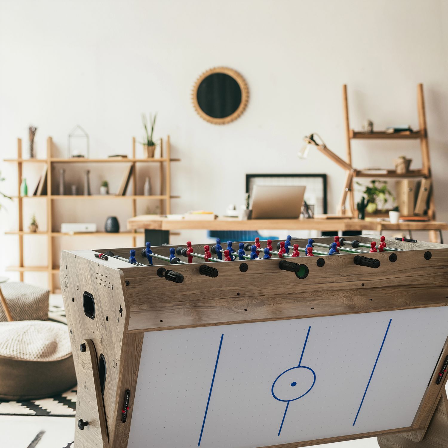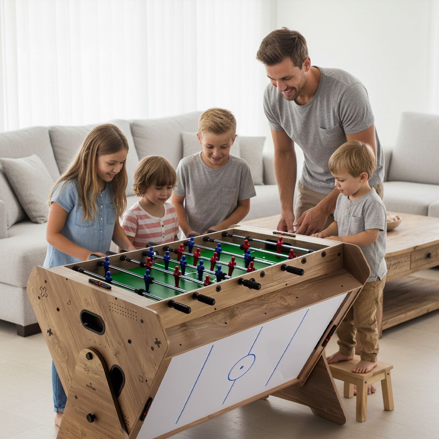 Stół został zaprojektowany z myślą o wspólnej rozrywce – jego wymiary są optymalnie dopasowane, by umożliwić komfortową grę zarówno dzieciom, jak i dorosłym. To rozwiązanie, które łączy pokolenia i zachęca do aktywnego spędzania czasu w gronie bliskich.