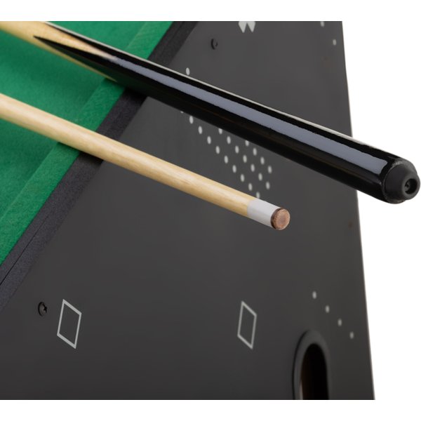 Jednym z kluczowych elementów tego stołu jest mechanizm obrotowy, który umożliwia szybką i łatwą zmianę funkcji. Dzięki temu, w zaledwie kilka chwil można przejść od emocjonującej gry w piłkarzyki do precyzyjnych strzałów w bilardzie, a następnie do dynamicznej rozgrywki w cymbergaj. To duże ułatwienie, które sprawia, że korzystanie z tego stołu jest niezwykle przyjemne i intuicyjne. Stół ten nie jest przeznaczony do użytku komercyjnego, co oznacza, że najlepiej sprawdzi się w domowych warunkach.