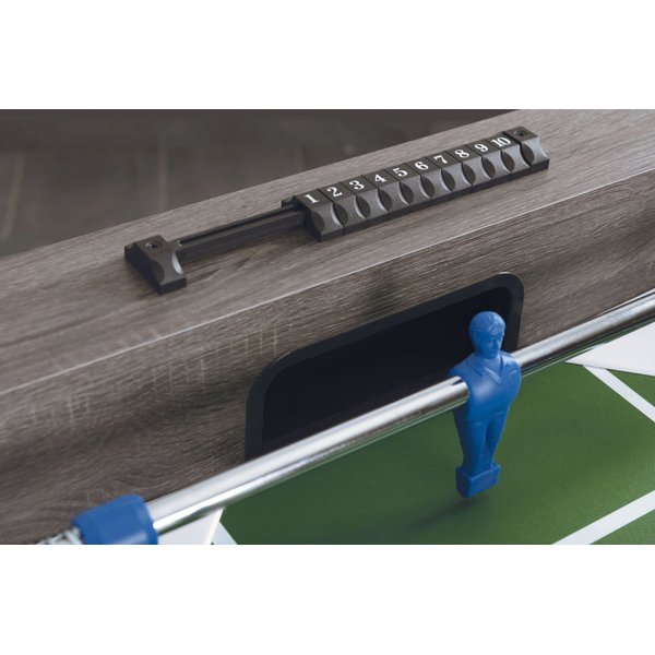 Multi 9 Garlando to solidny i wszechstronny stołowy wielofunkcyjny, który dostarcza mnóstwo zabawy dla całej rodziny. Można wybierać spośród 9 różnych gier, w tym piłkarzyków, bilarda, tenisa stołowego, kręgli, szachów i wielu innych. Obudowa MDF o grubości 25 mm z powłoką melaminową w kolorze wiśniowym zapewnia elegancki wygląd i wysoką jakość. Mocne kwadratowe nogi MDF z powłoką melaminową z efektem drewna wiśniowego zapewniają maksymalną stabilność podczas gry. Dodatkowo, Multi Pro 9 spełnia europejskie zharmonizowane przepisy bezpieczeństwa EN 71-1, 71-2, 71-3 i 71-9. W zestawie znajdują się akcesoria do każdej gry, a solidne zabezpieczenia styropianowe wewnątrz kartonu zapewniają, że stół zostanie dostarczony w idealnym stanie.