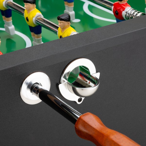- Płynność i precyzja ruchów: Teleskopowe prowadnice redukują tarcie, co przekłada się na szybszą i dokładniejszą reakcję piłkarzyków – niezależnie od intensywności gry.