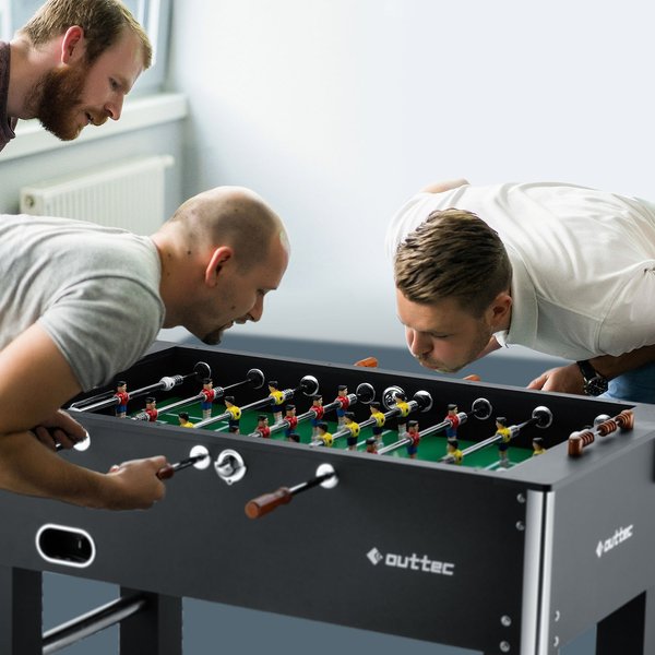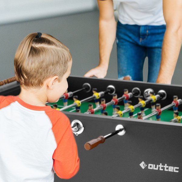 Prostota montażu i dbałość o detale to cechy, które czynią stół do piłkarzyków Outtec wyjątkowo przyjaznym w użytkowaniu. Dzięki przemyślanej konstrukcji jego rozłożenie jest szybkie i intuicyjne, a dodatkowe elementy podnoszą komfort i jakość rozgrywki.