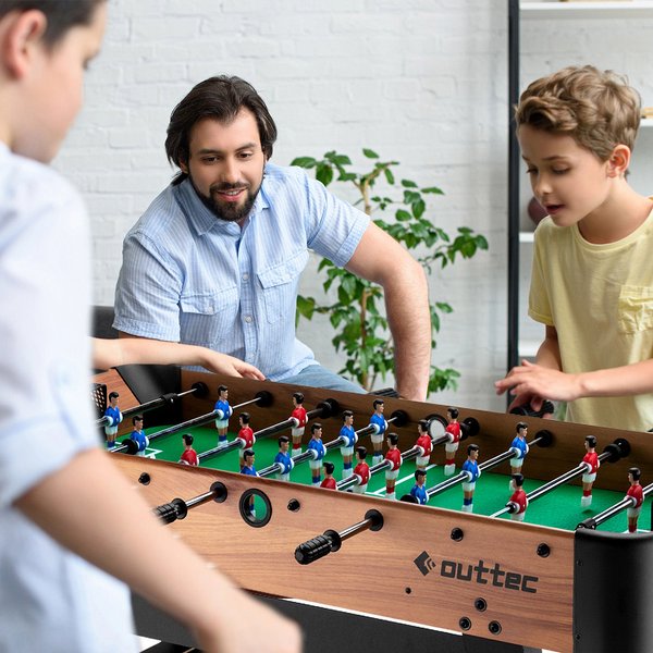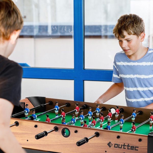 Stół do piłkarzyków Gamma Outtec to gwarancja emocjonujących rozgrywek. Solidna konstrukcja zapewnia trwałość, a precyzyjne prowadnice i ergonomiczne uchwyty sprawiają, że każdy ruch jest płynny i dynamiczny. Nowoczesny design sprawia, że produkt doskonale wpisuje się w każde wnętrze, łącząc funkcjonalność z estetyką. Dzięki intuicyjnej budowie montaż jest szybki i prosty, co pozwala cieszyć się grą bez zbędnej zwłoki. To idealny wybór zarówno na intensywne turnieje, jak i relaksujące mecze ze znajomymi.