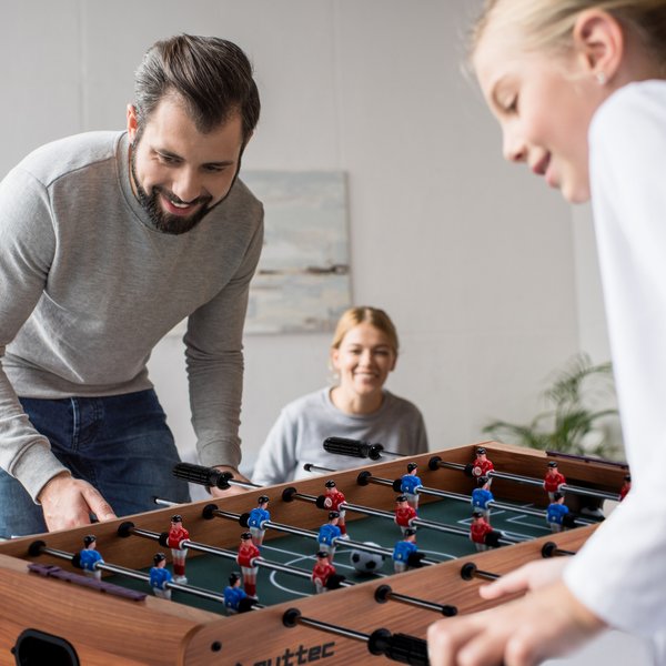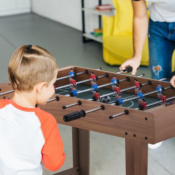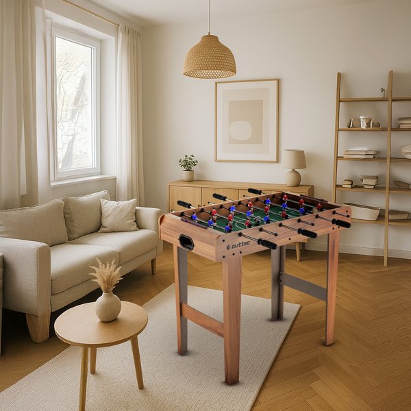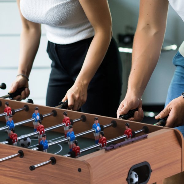 Kompaktowa forma stołu do piłkarzyków sprawia, że zmieści się on nawet w niewielkich pomieszczeniach – pokoju dziecięcym, salonie czy świetlicy. Stół zachowuje stabilność nawet podczas dynamicznej rozgrywki, co przekłada się na komfort i bezpieczeństwo użytkowania.