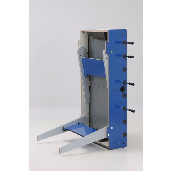 Nogi stołu, również wykonane z MDF o grubości 30 mm, zostały zaprojektowane z myślą o stabilności i funkcjonalności. Ich nachylona linia oraz możliwość składania pozwalają na łatwe przechowywanie stołu w miejscach o ograniczonej przestrzeni. Taka konstrukcja gwarantuje, że pomimo możliwości złożenia, stół pozostaje stabilny podczas intensywnej gry, co przekłada się na większą przyjemność z rozgrywki. Kolejną cechą wyróżniającą stół Master Pro są stalowe pręty o średnicy 16 mm, wyposażone w chromowaną powłokę antykorozyjną. Dzięki zastosowaniu stali ciągnionej o wysokiej odporności na skręcanie, pręty zachowują swój kształt nawet przy długotrwałym użytkowaniu. Osie przelotowe pozwalają na dynamiczną i swobodną grę, a nylonowe tuleje z wbudowanymi stalowymi łożyskami kulkowymi znacząco zwiększają płynność ruchu prętów, co z kolei zmniejsza obciążenie nadgarstków graczy.