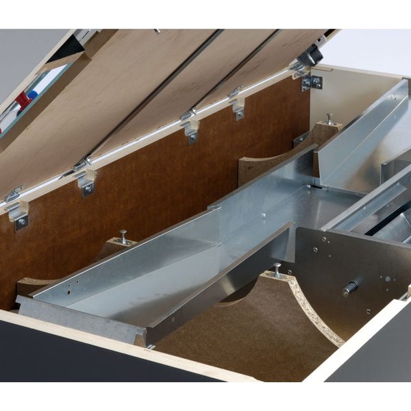 Zaprojektowany z myślą o najwyższych standardach, stół ten sprawdzi się zarówno w domowym zaciszu, jak i w miejscach o dużym natężeniu użytkowania, takich jak bary czy centra rozrywki. Jednym z kluczowych atutów tego stołu jest jego solidna konstrukcja. Wykonana ze sklejki i warstw MDF, zapewnia niezrównaną trwałość i odporność na intensywne użytkowanie. Grubość obudowy wynosi 3 centymetry, co gwarantuje stabilność i elastyczność, umożliwiającą wytrzymanie powtarzających się naprężeń bez ryzyka deformacji. Dodatkowo, zewnętrzna powłoka z czarnego laminatu z tworzywa sztucznego i satynowego aluminium nie tylko nadaje elegancki wygląd, ale także zabezpiecza przed zarysowaniami i uszkodzeniami mechanicznymi.