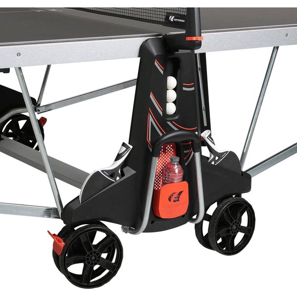 Transport i przechowywanie stołu są niezwykle proste dzięki dużym kołom z hamulcami, które umożliwiają łatwe przemieszczanie stołu po nierównym terenie, takim jak trawa czy piasek. Dodatkowe uchwyty transportowe ułatwiają podnoszenie stołu, co jest szczególnie przydatne przy pokonywaniu schodów czy progów. Stabilność stołu na każdej powierzchni zapewniają regulowane nogi, które można precyzyjnie dostosować do nierówności terenu. Bezpieczeństwo użytkowania stołu zwiększają gumowe narożniki, które chronią rogi stołu przed uszkodzeniami, zarówno podczas gry, jak i transportu. Złożenie i rozłożenie stołu jest proste i szybkie dzięki intuicyjnemu mechanizmowi blokującemu, który zapewnia, że stół pozostaje stabilny i bezpieczny podczas używania. Jakość wykonania stołu, potwierdzona 10-letnią gwarancją, to wynik 50-letniego doświadczenia marki w produkcji sprzętu sportowego.