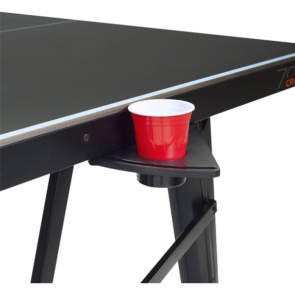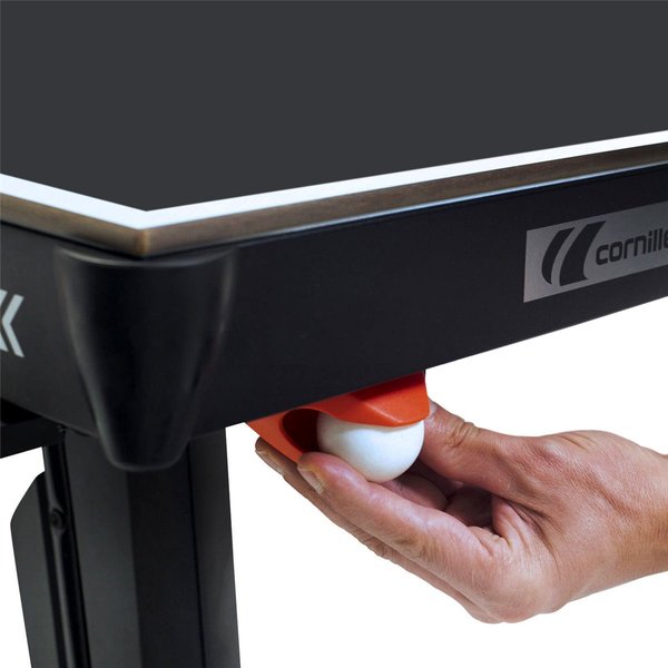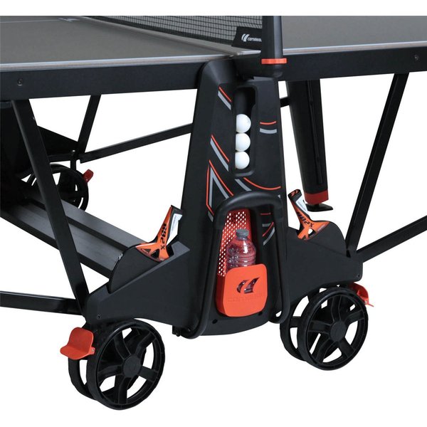 Stół 700X wyposażono w szereg praktycznych udogodnień, które wpływają na wygodę użytkowania. Automatycznie chowana siatka z systemem regulacji wysokości i napięcia jest chroniona przed uszkodzeniami mechanicznymi, co zapewnia jej długotrwałą funkcjonalność. Dodatkowo, liczniki punktów umieszczone przy krawędziach stołu umożliwiają łatwe śledzenie wyników gry, co czyni rywalizację bardziej ekscytującą. Innowacyjne rozwiązania przechowywania to kolejny atut tego modelu. Stół posiada wbudowane kieszenie na rakietki i piłeczki, co pozwala na łatwy dostęp do akcesoriów podczas gry. Uchwyty na napoje zlokalizowane po obu stronach stołu są odpowiedzią na potrzeby graczy, zapewniając im dostęp do orzeźwienia, co jest szczególnie przydatne w ciepłe dni. Dodatkowo, gumowe narożniki na rogach stołu zapewniają ochronę przed przypadkowymi uderzeniami, chroniąc zarówno mebel, jak i graczy.