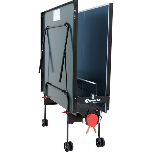 Stół do tenisa stołowego Sponeta S1-26i to wysokiej klasy sprzęt do użytku wewnętrznego. Model ten ma opcję składania oraz kółka transportowe, które pomogą w prostym przemieszczeniu sprzętu w dowolne miejsce. Wyjątkowo gruby 16mm blat gwarantuje długa żywotność sprzętu i odporność na odkształcenia.