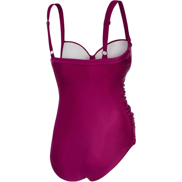 Marzy Ci się świetny wygląd na plaży i na basenie? Odpowiednie usztywnienie w miskach i fiszbiny pod biustem dobrze podtrzymają biust i z pewnością nie zawiodą, zapewniając Ci wymarzony wygląd i podkreślając Twoje kształty. Specjalnie zaprojektowana wyszczuplająca podszewka, umieszczona z przodu kostiumu ma za zadanie wysmuklić Twoją sylwetkę. Niedoskonałości figury są z kolei maskowane przez delikatne marszczenia na biuście i brzuchu.