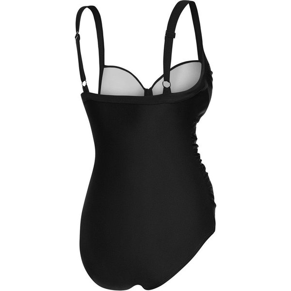 Marzy Ci się świetny wygląd na plaży i na basenie? Odpowiednie usztywnienie w miskach i fiszbiny pod biustem dobrze podtrzymają biust i z pewnością nie zawiodą, zapewniając Ci wymarzony wygląd i podkreślając Twoje kształty. Specjalnie zaprojektowana wyszczuplająca podszewka, umieszczona z przodu kostiumu ma za zadanie wysmuklić Twoją sylwetkę. Niedoskonałości figury są z kolei maskowane przez delikatne marszczenia na biuście i brzuchu.