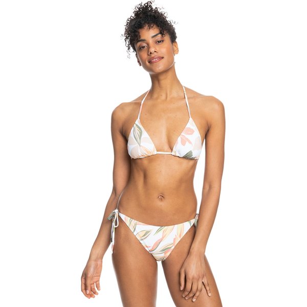 Wakacje nad morzem? Wybierz strój kąpielowy Beach Classics J od marki Roxy. Dzięki niemu, będziesz wyglądała zniewalająco, nawet na plaży. Został on wykonany z wysokiej jakości materiałów, które są odpowiedzialne za wytrzymałą konstrukcję oraz Twój komfort podczas użytkowania. Masz zatem pewność, że posłuży Ci on nie tylko podczas jednego sezonu. Pozostanie z Tobą dłużej niż myślisz! Ponadto, część materiałów, wykorzystanych podczas produkcji pochodzi z recyklingu, co stanowi ogromny krok w stronę ochrony środowiska. Obecnie, coraz więcej marek decyduje się na korzystanie z bardziej ekologicznych rozwiązań, aby zminimalizować ilość odpadów, które każdego dnia zaśmiecają naszą planetę. Strój posiada dwuczęściową konstrukcję o ciekawym, roślinnym designie. Trójkątne miseczki możesz regulować i ściągać na sznurkach. Dzięki wiązaniom, sama idealnie dopasujesz rozmiar, zarówno biustonosza, jak i dolnej części.