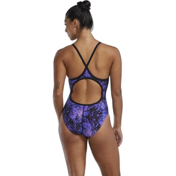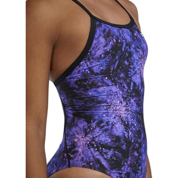 Strój kąpielowy damski TYR to idealny wybór dla entuzjastek pływania, oferujący niezrównaną trwałość i komfort. Dzięki technologii Durafast Lite, materiał zachowuje swoje właściwości nawet po 200 godzinach intensywnego użytkowania, a ochrona UV (UPF 50+) skutecznie zabezpiecza skórę przed szkodliwym promieniowaniem. Elastyczne paski i sportowy krój z okrągłym wycięciem na plecach zapewniają doskonałe dopasowanie i swobodę ruchów. W pełni podszyty materiał antybakteryjny oraz odporność na chlor gwarantują higienę i długotrwałe użytkowanie. Nowoczesny, abstrakcyjny wzór i logo na przodzie dodają elegancji temu jednoczęściowemu projektowi.