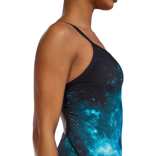 Jego głównym atutem jest wyjątkowa trwałość, co czyni go idealnym wyborem zarówno dla profesjonalnych pływaczek, jak i amatorek poszukujących stroju, który sprosta intensywnym treningom oraz długim godzinom spędzonym w wodzie. Dzięki zastosowaniu technologii Durafast Elite, materiał tego stroju zachowuje swoje właściwości przez ponad 300 godzin użytkowania, co gwarantuje długowieczność i niezmienioną jakość nawet przy częstym użytkowaniu. Strój wyróżnia się rewelacyjną odpornością na blaknięcie, co oznacza, że kolory pozostają żywe i intensywne nawet po wielu praniach oraz ekspozycji na słońce. Zastosowana ochrona UPF50+ chroni przed szkodliwym działaniem promieni UV, co jest niezwykle istotne dla zdrowia skóry i komfortu podczas pływania w otwartych wodach.