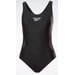 Model wykonano z wysokojakościowych materiałów, dzięki czemu strój jest odpowiednio elastyczny i niesamowicie wytrzymały, na długo zachowa swój wygląd i właściwości. Po wyjściu z wody gładka tkanina szybko schnie. Panele z lekkiej siateczki po bokach są przewiewne, dzięki czemu skóra może oddychać. Jednoczęściowy kostium jest wyjątkowo wygodny. Nieco szerokie ramiączka nie wbijają się w ciało. Łączenie racerback zapewnia swobodę ruchu i komfort podczas pływania. Usztywniane miseczki bez fiszbinów zapewniają delikatne wsparcie. Subtelne aplikacje nawiązujące do marki zdobią strój z przodu i z tyłu.