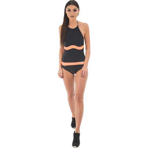 Kostium doskonale przylega do ciała dzięki dużej elastyczności. Drukowane wstawki dodają szyku i ożywiają stonowaną, ciemną kolorystykę. Strój ten posiada nieco przedłużony dół, dzięki czemu możesz liczyć na wygodę i lepsze zakrycie dolnych partii ciała. Sznurki na szyi i plecach pozwolą na idealne dopasowanie stroju do Twojej figury.
