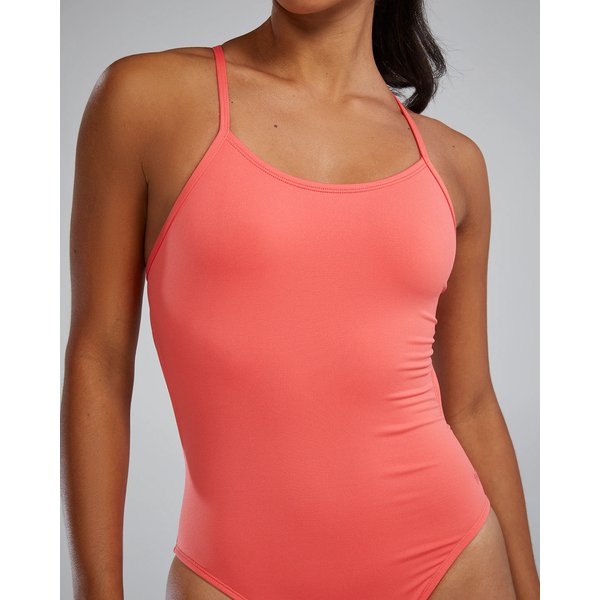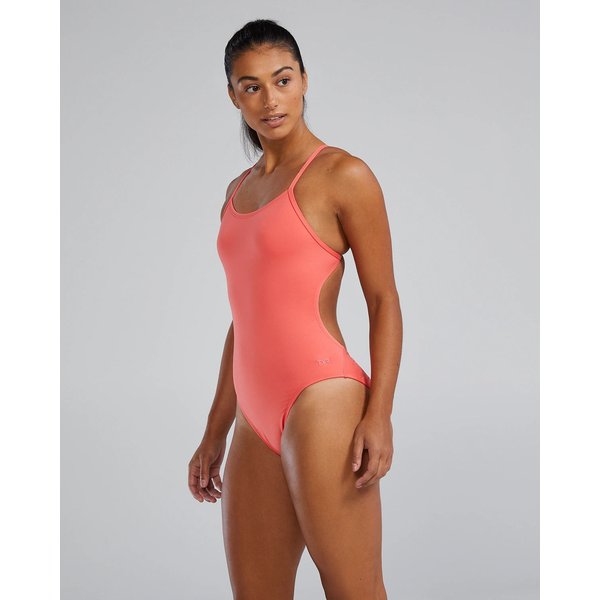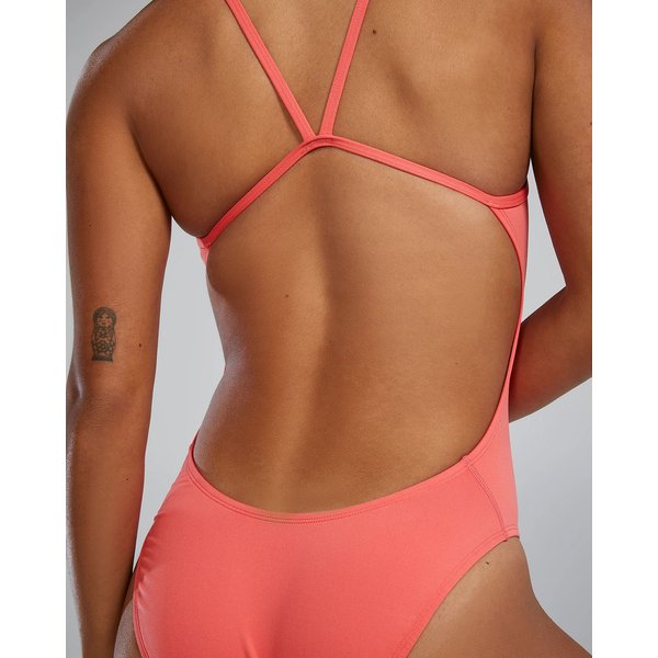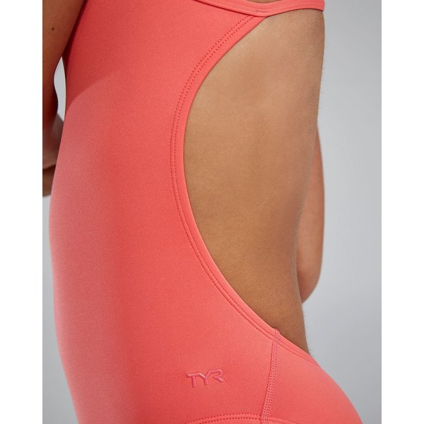 Damski strój kąpielowy Solid Cutoutfit od TYR został zaprojektowany, aby zapewnić maksymalną wydajność i komfort podczas pływania. Wykonany z materiału Durafast Elite, gwarantuje ponad 300 godzin intensywnego użytkowania, zachowując przy tym trwałość kolorów. Ochrona UV chroni skórę przed szkodliwym działaniem słońca, a całkowite podszycie zapewnia większe wsparcie i wygodę. Odkryte plecy i niski dekolt w połączeniu z cienkimi ramiączkami i krojem pleców typu "X" oferują pełen zakres ruchu 360°, co jest idealne dla aktywnych pływaczek. Dopasowany krój otacza ciało, a gładki materiał oraz wysoko wycięte nogawki podkreślają sylwetkę, zapewniając jednocześnie stylowy wygląd. Logo mark dodaje charakteru temu eleganckiemu, jednoczęściowemu strojowi.