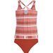Tankini PRTKENSI marki Protest to idealny wybór dla miłośniczek sportów wodnych i plażowego wypoczynku. Dzięki swojemu luźnemu krojowi zapewnia wygodę i swobodę ruchów. Góra tankini, ozdobiona subtelnie plisowanymi detalami, posiada niewidoczną konstrukcję biustonosza oraz szybkoschnące wyjmowane wkładki z pianki, które zapewniają dodatkowe wsparcie i wygodę. Ramiączka w stylu racerback są wiązane z tyłu, co pozwala na indywidualne dopasowanie. Majtki hipster, wykonane z materiału pochodzącego z recyklingu, dopełniają całości. Tankini PRTKENSI to nie tylko modny wygląd, ale również troska o środowisko.