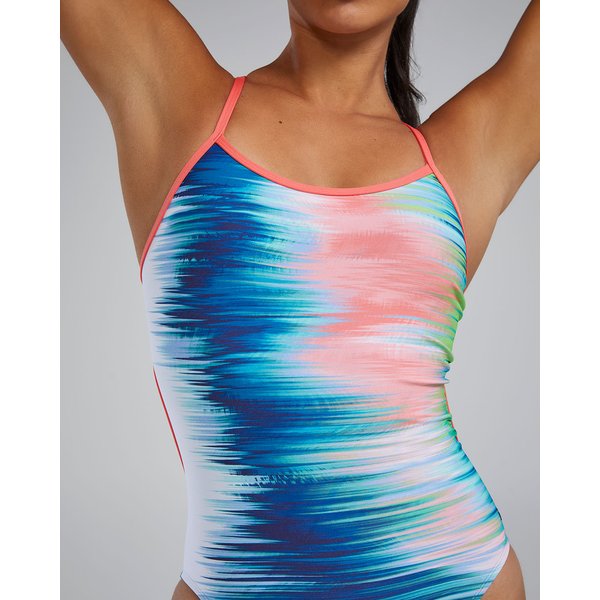 Damski strój kąpielowy Trinityfit Bravura to doskonały wybór dla kobiet poszukujących komfortu i stylu podczas treningów pływackich. Wykonany z tkaniny Durafast Elite, zapewnia trwałość i odporność na chlor, co przekłada się na ponad 300 godzin niezmienionej wydajności. Technologie UV (UPF50+) chronią skórę przed szkodliwym promieniowaniem słonecznym, a antybakteryjna podszewka podnosi higienę użytkowania. Wspierające, elastyczne paski i dopasowany fason gwarantują optymalne dopasowanie i swobodę ruchów. Sportowy krój z odkrytymi plecami oraz krzyżującymi się cienkimi ramiączkami dodaje elegancji, a wzór podkreśla unikalny styl produktu.