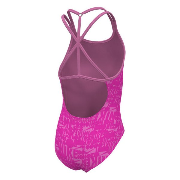 Ten jednoczęściowy strój kąpielowy dla dziewcząt marki Nike Swim to idealny wybór dla młodych sportowców. Dzięki krzyżującym się ramiączkom na plecach i konstrukcji w kształcie litery T, zapewnia swobodę ruchów podczas wszystkich aktywności w wodzie. Modne kolory i retro styl Swoosh sprawią, że młoda użytkowniczka zrobi furorę na plaży lub basenie. Standardowe pokrycie dołu gwarantuje odpowiednią osłonę, a sitodrukowe logo dodaje stylu. Cienkie ramiączka, okrągły dekolt z przodu i wycięcia na plecach to dodatkowe cechy, które sprawiają, że ten strój kąpielowy jest nie tylko funkcjonalny, ale także modny.