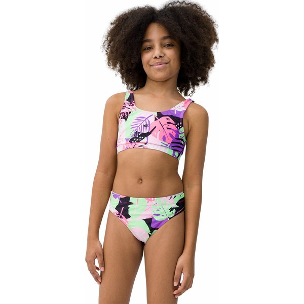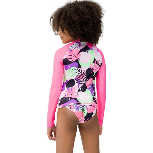 Strój kąpielowy dziewczęcy 4FJWSS24UBKSF025 4F to idealne rozwiązanie na letnie dni pełne aktywności. Trzyczęściowy zestaw zapewniający komfort i swobodę ruchów podczas pływania i plażowania. Materiał główny z dodatkiem elastanu sprawia, że strój jest lekko rozciągliwy i dobrze przylega do ciała. Podszewka gwarantuje komfort i krycie, a szybkoschnące włókna odprowadzają wilgoć. Top z gumą pod biustem zapewnia odpowiednie wsparcie, a figi ze średnim stanem podkreślają sylwetkę. Longsleeve jest doskonałym uzupełnieniem zestawu. Dzięki raglanowym rękawom, okrągłemu dekoltowi i szybkoschnącym włóknom, każda dziewczyna będzie czuła się modnie i wygodnie na plaży.