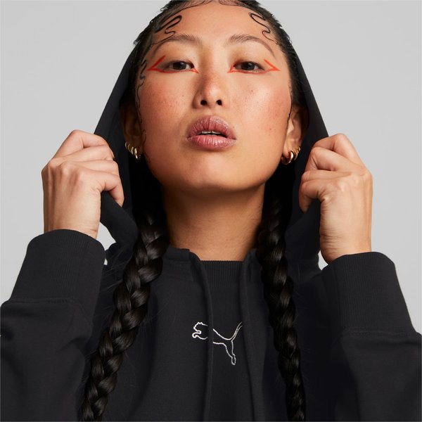 Wygodna sukienka dresowa Her od marki Puma to propozycja dla kobiet, które cenią sobie sportowy styl, ale zarazem lubią czuć się kobieco. Produkt został wykonany z solidnych materiałów, które są gwarancją wygody, wytrzymałości oraz komfortu podczas użytkowania. Ponadto, znaczącą część składu materiałowego stanowi bawełna, dzięki której masz pewność, że zawsze będziesz czuła się świeżo i przyjemnie. Sukienka jest miękka, miła w dotyku i elastyczna. Model ten posiada regulowany kaptur ze ściągaczem, boczne rozcięcia dla jeszcze większej swobody ruchowej, ściągacze na mankietach oraz logo marki Puma.