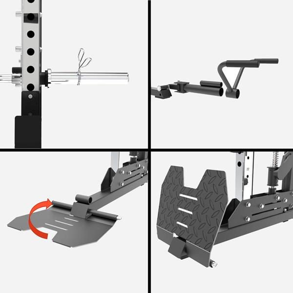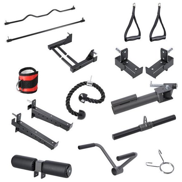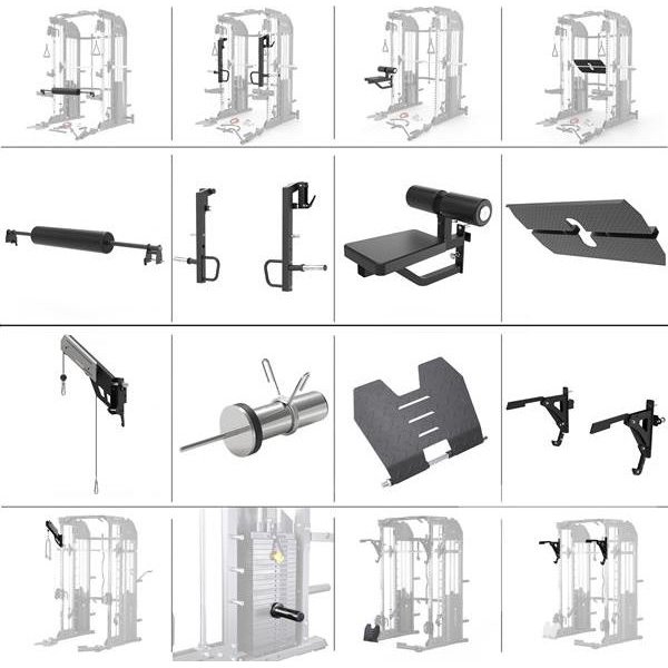 Jednym z największych atutów Cyklopa 4 jest jego bogate wyposażenie, które zaspokoi potrzeby nawet najbardziej wymagających użytkowników. Wbudowana suwnica Smitha oferuje bezpieczne i skuteczne treningi, dzięki regulowanej wysokości i zabezpieczeniom przed upadkiem ciężaru. Drążek do podciągania, który umożliwia różnorodne ćwiczenia pleców, ramion i brzucha, jest dodatkowo wzbogacony o możliwość zmiany chwytu i kierunku, co pozwala na większą różnorodność treningów. System wyciągów górnego i dolnego z regulowaną wysokością oferuje wszechstronność treningową, umożliwiając pracę nad różnymi grupami mięśniowymi. Zestaw różnorodnych uchwytów, takich jak uchwyty standardowe, łamane, na gryf czy trójkątne, pozwala na dostosowanie ćwiczeń do indywidualnych potrzeb użytkownika.
