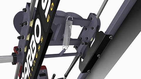 Specjalny system blokowania przy użyciu mocnej sprężyny pozwala na szybki i intuicyjne zablokowanie maszyny po skończonych ćwiczeniach.
