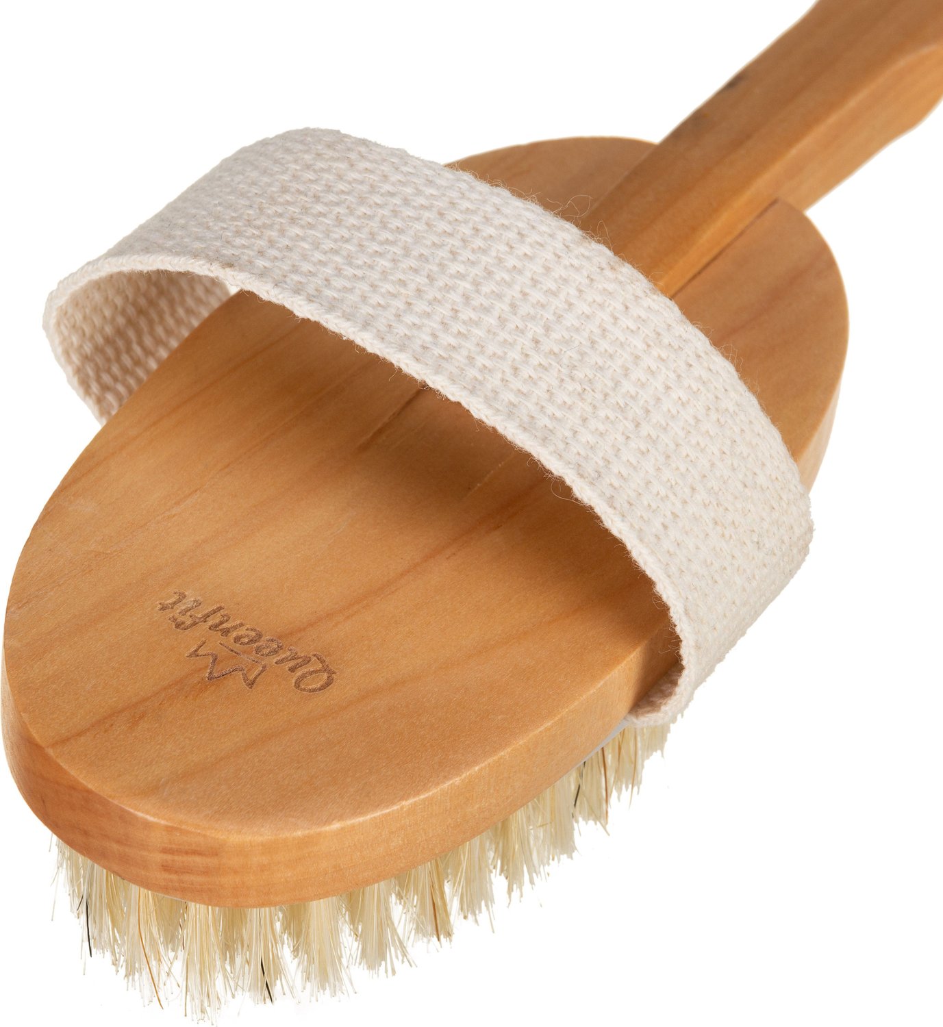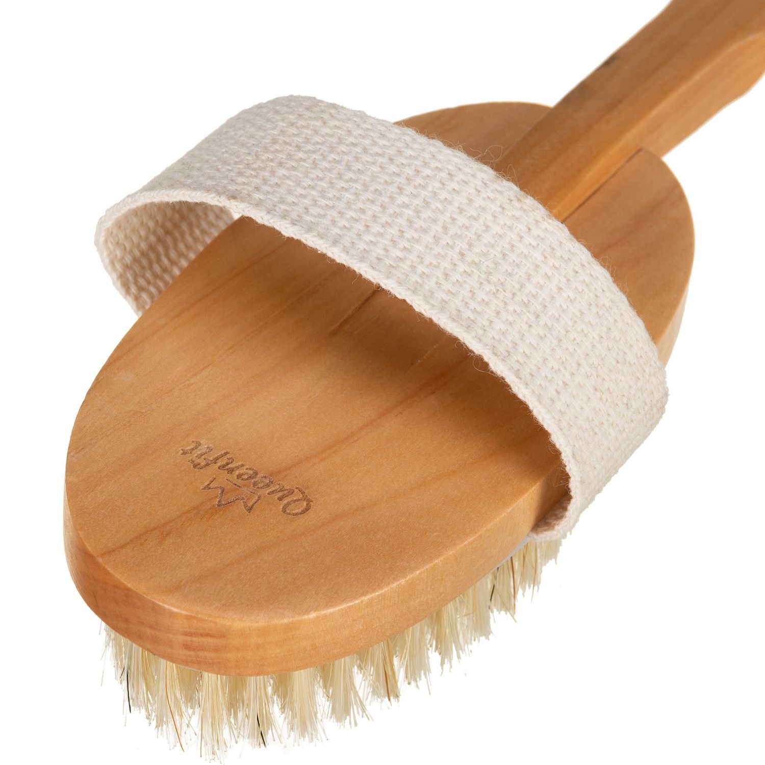 Codzienne uczucie napięcia w ciele, utrata jędrności skóry czy widoczny cellulit to problemy, które można złagodzić dzięki masażowi szczotką od Queenfit wykonaną z drewna lotosowego. Regularne stosowanie wspiera mikrokrążenie, pomaga redukować napięcia mięśniowe i sprzyja regeneracji skóry, przywracając jej elastyczność i zdrowy wygląd. Dzięki włosiu o średniej twardości skutecznie złuszcza martwy naskórek, ułatwiając odnowę komórkową i poprawiając komfort codziennego funkcjonowania. Wydłużona rączka pozwala na wygodne dotarcie do trudno dostępnych miejsc, a trwała konstrukcja zapewnia niezawodne wsparcie w codziennej pielęgnacji.