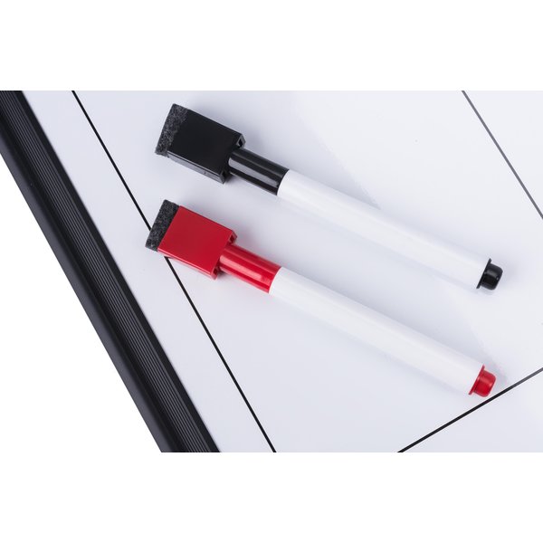 Tablica taktyczna to idealne narzędzie dla trenerów piłki siatkowej, za pomocą której w jasny i czytelny sposób nakreślisz wszystkim graczom obraną taktykę. Razem z tablicą w zestawie znajdziesz marker i magnesy w kilku kolorach, dzięki którym możesz jeszcze lepiej przedstawić sytuację na boisku i nakreślić plan działania. Model ten jest suchościeralny, tak więc w szybki sposób usuniesz z niego marker i tablica od razu będzie gotowa do ponownego użytku. Dodatkowo do zestawu dołączono praktyczny pokrowiec z rączką, tak abyś tablicę i wszystkie jej elementy mógł mieć zawsze pod ręką.