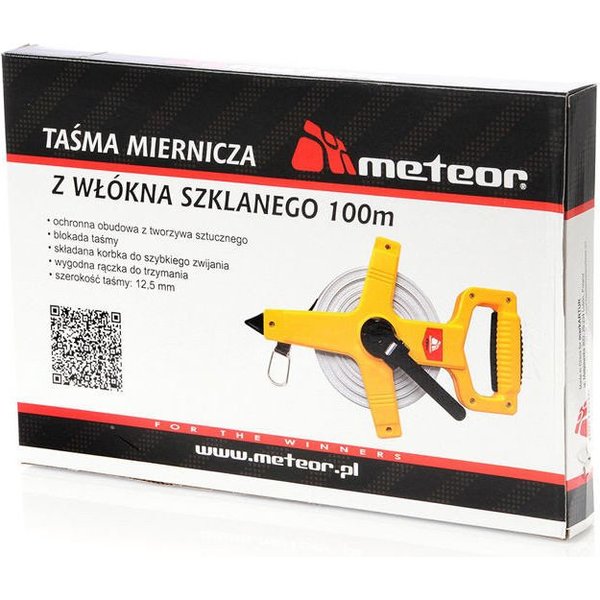 Taśma miernicza Meteor, sprawdzi się podczas dokonywania pomiarów w różnych dyscyplinach sportowych, zaczynając od skoku w dal, a kończąc na odmierzaniu boiska do gry. Wykonana z włókna szklanego z gumowym wykończeniem, cechuje się sporą wytrzymałością. Natomiast zintegrowana korbka, umożliwi sprawne zwijanie oraz rozwijanie taśmy.