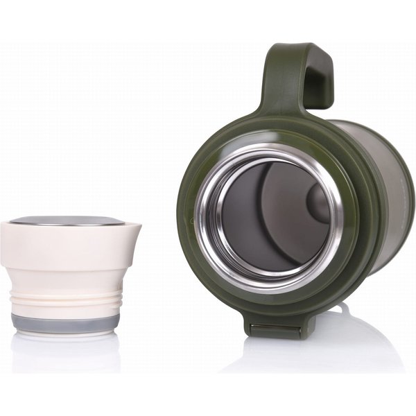 W łatwy i bezproblemowy sposób zdemontujesz termos i szybko wyczyścisz jego każdy element. Szczelne zamkniecie zagwarantuje pewność przed przeciekaniem, a wygodny ustnik pozwoli na bezpośrednie picie z termosu. Jeśli jednak zapragniesz napić się napoju w inny sposób, nakrętka posłuży Ci jako kubek - jest to wygodne rozwiązanie, z którego nie zrezygnujesz. Został wyprodukowany ze stali nierdzewnej, która zapewnia trwałość oraz wysoką ochronę przed zarysowaniami, czy uszkodzeniami mechanicznymi. Poradzi sobie nawet podczas ekstremalnych warunków - nadal będzie wyglądał doskonale.