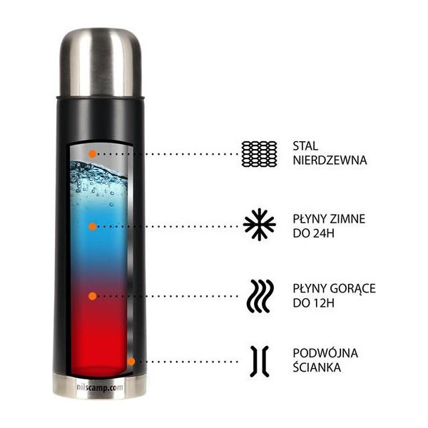 Termos NCC07 1L Nils Camp długo utrzymuje ciepło, dzięki czemu Twoja podróż będzie niezwykle przyjemna..