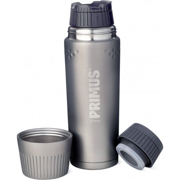 Termos TrailBreak marki Primus stanowi doskonały wybór dla osób długo przebywających poza domem. Model ma pojemność 0,75l, więc z pewnością ciepłego napoju Ci nie zabraknie. Dzięki wykonaniu z wysokiej jakości stali nierdzewnej jest niezwykle wytrzymały i szczelny. Próżniowa izolacja sprawia, że trzyma ciepło Twojej kawy lub herbaty nawet do 8 godzin. Na korpusie oraz nakrętce wykonano specjalne wcięcia poprawiające chwyt termosu, więc jest niezwykle ergonomiczny i nie wypadnie Ci z dłoni. W zestawie są 2 nakrętki: pierwsza jest przystosowana do szybkiego użytku i wystarczy ją tylko przekręcić, by móc się napić bezpośrednio z termosu lub nalać napój do kubka, a druga nakrętka służy do zakręcenia termosu, dzięki czemu ogranicza utratę ciepła.
