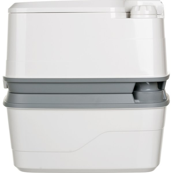 Toaleta turystyczna Qube XGL z serii Campa Potti ma niewielkie wymiary i waży zaledwie 3,6kg, więc jest bezproblemowa w transporcie - zmieści się w każdym samochodzie. Nie traci przy tym na najistotniejszych właściwościach - posiada 21-litrowy zbiornik na nieczystości i 15-litrowy na wodę czystą. W przypadku toalet przenośnych jest to naprawdę duża pojemność, która po prostu... wystarczy na dłuższy czas. Szybko sprawdzisz stopień napełnienia pojemnika z nieczystościami, gdyż toaleta ta posiada wygodny wskaźnik wypełnienia - jeden rzut oka i już wiesz, czy należy go opróżnić. Innym istotnym plusem prezentowanej toalety jest także to, że opróżnianie odbywa się w prosty i higieniczny sposób, bez kontaktu z nieczystościami.