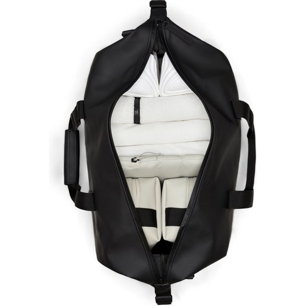 Torba Hilo Weekend Bag Large 47L Rains to idealna opcja dla wszystkich miłośników podróży na weekendowy wypad. Duża komora główna z powlekanym zamkiem błyskawicznym zapewnia miejsce na ubrania, urządzenia techniczne i niezbędne drobiazgi. Dzięki bocznym paskom kompresyjnym można bezpiecznie zabezpieczyć rzeczy. Torba posiada także wewnętrzną kieszeń na zamek, długie uchwyty do noszenia w ręku oraz regulowany, odpinany pasek na ramię. Wzmocnione dno i materiał odporny na przetarcia sprawiają, że torba jest nie tylko pojemna, ale także trwała i praktyczna. Dzięki możliwości noszenia na ramieniu, podróżowanie jeszcze nigdy nie było tak wygodne!