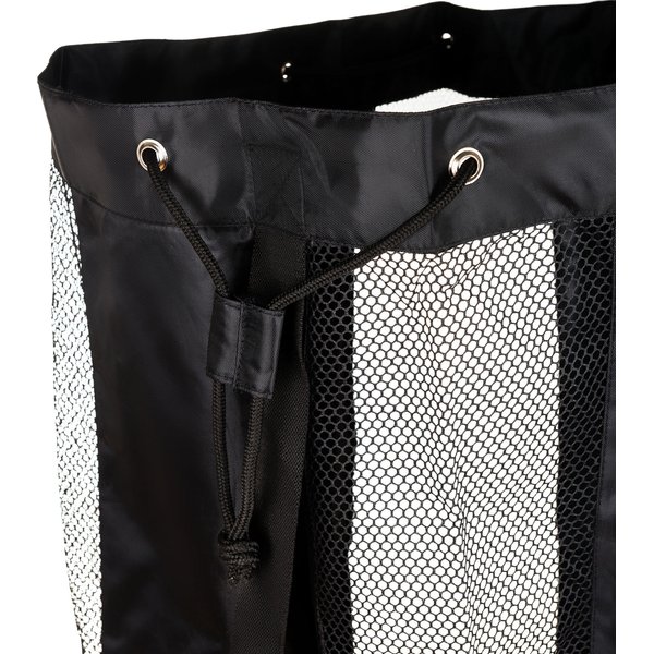 Dzięki wykonaniu z odpornego na uszkodzenia, trwałego nylonu torba nadaje się świetnie do przechowywania piłek. Nie będą się kurzyć, niszczyć, a przede wszystkim nie zajmą całego pomieszczenia, lecz będą wszystkie w jednym miejscu, więc ich zlokalizowanie stanie się błahostką. W prezentowanej torbie umieścisz piłki do piłki ręcznej, nożnej lub siatkówki. W zależności od ich rozmiaru, w torbie zmieścisz nawet 12 piłek! Praktyczny pasek na ramię ułatwia przenoszenie np. z magazynku na boisko. Z kolei ściągacz u góry zapobiega przypadkowemu wypadnięciu piłek w trakcie przenoszenia. Wygodniej się nie da!